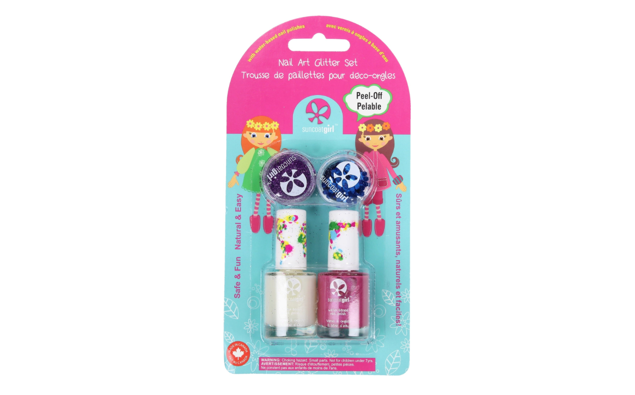 Our Suncoat Girl eco nail polish is a safe Peel-off children's nail polish on a water basis without harmful substances. This unique nail polish for children is available in various beautiful cheerful colors with which you can easily, safely and without worries paint your child's nails in a cheerful color. This set contains 2 nail polishes (pink and clear gloss) and glitters.
